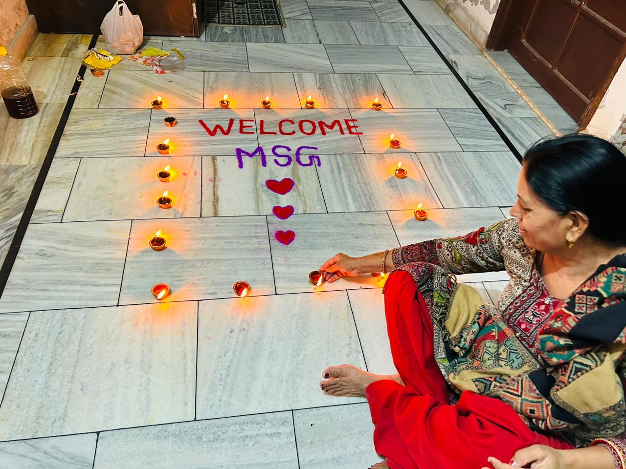 ਸਰਸਾ। ਸ਼ਾਹ ਸਤਿਨਾਮ ਜੀ ਪੁਰਾ, ਸਰਸਾ ਦੀ ਸਾਧ-ਸੰਗਤ ਰੰਗਲੀ ਬਣਾ ਤੇ ਦੀਵੇ ਜਗਾ ਕੇ ਪੂਜਨੀਕ ਗੁਰੂ ਜੀ ਦੇ ਆਗਮਨ ਦੀ ਖੁਸ਼ੀ ਮਨਾਉਂਦੀ ਹੋਈ।
