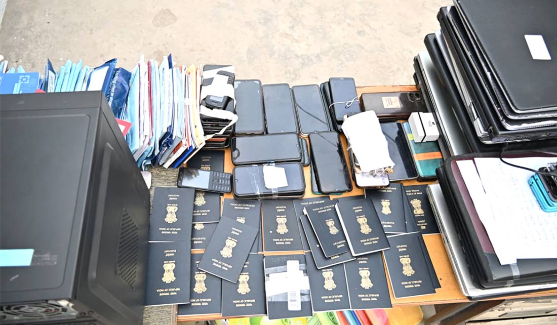 ਰੇਡ ਦੌਰਾਨ ਪੁਲਿਸ ਨੂੰ ਹੈਰਾਨ ਕਰਨ ਵਾਲੀ ਮਾਤਰਾ ਵਿੱਚ ਸ਼ੱਕੀ ਸਮਾਨ ਬਰਾਮਦ ਹੋਇਆ। ਪੁਲਿਸ ਨੇ ਮੌਕੇ ਤੋਂ 30 ਪਾਸਪੋਰਟ, 34 ਕੰਪਿਊਟਰ, ਲੈਪਟਾਪ ਅਤੇ ਟੈਬ, 15 ਏ.ਟੀ.ਐਮ ਕਾਰਡ ਅਤੇ 175 ਚੈਕ ਬੁੱਕਾਂ ਕਬਜ਼ੇ ਵਿੱਚ ਲਈਆਂ, ਜਿਨ੍ਹਾਂ ਵਿੱਚੋਂ ਕਈ ਚੈਕ ਬੁੱਕਾਂ ਪਹਿਲਾਂ ਤੋਂ ਸਾਈਨ ਕੀਤੀਆਂ ਹੋਈਆਂ ਸਨ। ਇਹ ਸਾਰਾ ਸਮਾਨ ਗੈਰਕਾਨੂੰਨੀ ਲੈਣ-ਦੇਣ ਅਤੇ ਵਿੱਤੀ ਧੋਖਾਧੜੀ ਵੱਲ ਸਪੱਸ਼ਟ ਇਸ਼ਾਰਾ ਕਰਦਾ ਹੈ। ਇਸ ਤੋਂ ਇਲਾਵਾ ਵੱਡੀ ਮਾਤਰਾ ਵਿੱਚ ਅਹਿਮ ਦਸਤਾਵੇਜ਼ ਅਤੇ ਡਿਜੀਟਲ ਡਾਟਾ ਵੀ ਬਰਾਮਦ ਕੀਤਾ ਗਿਆ ਹੈ, ਜਿਸ ਦੀ ਬਾਰੀਕੀ ਨਾਲ ਜਾਂਚ ਕੀਤੀ ਜਾ ਰਹੀ ਹੈ। ਐਸ.ਐਸ.ਪੀ ਡਾ. ਦਰਪਣ ਆਹਲੂਵਾਲੀਆ ਨੇ ਸਪੱਸ਼ਟ ਕੀਤਾ ਕਿ ਵਿਦੇਸ਼ ਭੇਜਣ ਦੇ ਨਾਂਅ ਉੱਪਰ ਨੌਜਵਾਨਾਂ ਦੇ ਭਵਿੱਖ ਨਾਲ ਖਿਲਵਾੜ ਕਰਨ ਵਾਲਿਆਂ ਨੂੰ ਕਿਸੇ ਵੀ ਕੀਮਤ ’ਤੇ ਬਖ਼ਸ਼ਿਆ ਨਹੀਂ ਜਾਵੇਗਾ।