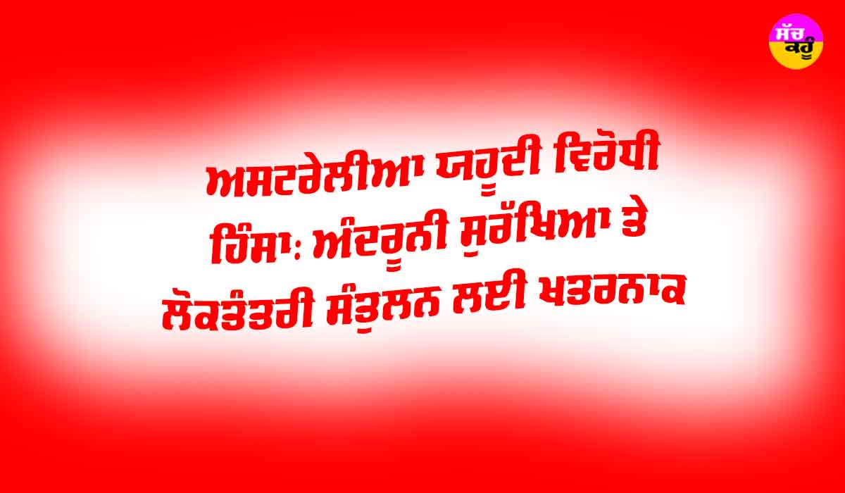 Australia Anti Semitic Violence: ਅਸਟਰੇਲੀਆ ਯਹੂਦੀ ਵਿਰੋਧੀ ਹਿੰਸਾ, ਅੰਦਰੂਨੀ ਸੁਰੱਖਿਆ ਤੇ ਲੋਕਤੰਤਰੀ ਸੰਤੁਲਨ ਲਈ ਖ਼ਤਰਨਾਕ