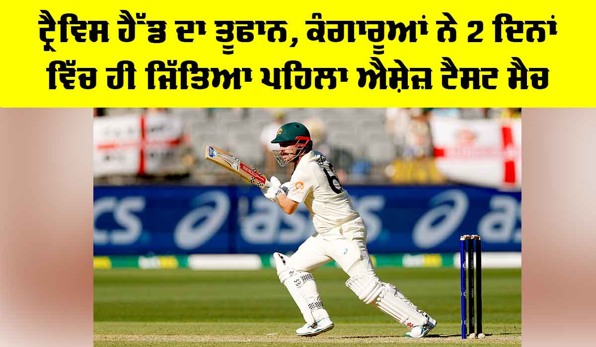 AUS vs ENG: ਸਪੋਰਟਸ ਡੈਸਕ। ਅਸਟਰੇਲੀਆ ਨੇ ਐਸ਼ੇਜ਼ ਸੀਰੀਜ਼ ਦਾ ਪਹਿਲਾ ਟੈਸਟ 8 ਵਿਕਟਾਂ ਨਾਲ ਜਿੱਤ ਲਿਆ ਹੈ। ਟੀਮ ਨੇ ਸ਼ਨਿੱਚਰਵਾਰ ਨੂੰ ਪਰਥ ਸਟੇਡੀਅਮ ’ਚ ਮੈਚ ਦੇ ਦੂਜੇ ਦਿਨ ਇੰਗਲੈਂਡ ਨੂੰ ਹਰਾ ਦਿੱਤਾ। ਟ੍ਰੈਵਿਸ ਹੈੱਡ ਦੇ 69 ਗੇਂਦਾਂ ਦੇ ਸੈਂਕੜੇ ਨੇ ਟੀਮ ਨੂੰ ਸਿਰਫ਼ 28.2 ਓਵਰਾਂ ’ਚ 205 ਦੌੜਾਂ ਦਾ ਟੀਚਾ ਹਾਸਲ ਕਰਨ ’ਚ ਮਦਦ ਕੀਤੀ। ਇੰਗਲੈਂਡ ਨੇ ਪਹਿਲੀ ਪਾਰੀ ’ਚ 172 ਦੌੜਾਂ ਬਣਾਈਆਂ, ਜਦੋਂ ਕਿ ਅਸਟਰੇਲੀਆ ਨੇ 132 ਦੌੜਾਂ ਬਣਾਈਆਂ। ਦੂਜੀ ਪਾਰੀ ’ਚ, ਇੰਗਲੈਂਡ ਸਿਰਫ਼ 164 ਦੌੜਾਂ ਹੀ ਬਣਾ ਸਕਿਆ, ਜਿਸ ਨਾਲ ਘਰੇਲੂ ਟੀਮ ਨੂੰ 205 ਦੌੜਾਂ ਦਾ ਟੀਚਾ ਮਿਲਿਆ। ਟ੍ਰੈਵਿਸ ਹੈੱਡ ਨੇ 83 ਗੇਂਦਾਂ ’ਚ 123 ਦੌੜਾਂ ਤੇ ਮਾਰਨਸ ਲਾਬੂਸ਼ਾਨੇ ਨੇ 49 ਗੇਂਦਾਂ ’ਚ 51 ਦੌੜਾਂ ਬਣਾ ਕੇ ਟੀਮ ਨੂੰ ਜਿੱਤ ਦਵਾ ਦਿੱਤੀ। ਸੀਰੀਜ਼ ਦਾ ਦੂਜਾ ਟੈਸਟ 4 ਦਸੰਬਰ ਤੋਂ ਬ੍ਰਿਸਬੇਨ ਦੇ ਗਾਬਾ ਸਟੇਡੀਅਮ ’ਚ ਖੇਡਿਆ ਜਾਵੇਗਾ। ਇਹ ਮੈਚ ਇੱਕ ਦਿਨ-ਰਾਤ ਦਾ ਮੈਚ ਹੋਵੇਗਾ, ਜਿਸ ’ਚ ਗੁਲਾਬੀ ਗੇਂਦ ਨਾਲ ਖੇਡ ਖੇਡੀ ਜਾਵੇਗੀ।
