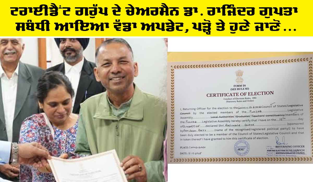 ਪਦਮਸ਼੍ਰੀ ਰਾਜਿੰਦਰ ਗੁਪਤਾ ਹਮੇਸ਼ਾ ਪੰਜਾਬ ’ਚ ਇੱਕ ਪ੍ਰਮੁੱਖ ਸ਼ਖ਼ਸੀਅਤ ਰਹੇ ਹਨ। ਜਦੋਂਕਿ ਉਨ੍ਹਾਂ ਨੇ ਸਾਰੀਆਂ ਸਿਆਸੀ ਪਾਰਟੀਆਂ ਨਾਲ ਚੰਗੇ ਸਬੰਧ ਬਣਾ ਕੇ ਰੱਖੇ ਹਨ, ਉਹ ਕਦੇ ਵੀ ਕਿਸੇ ਪਾਰਟੀ ਨਾਲ ਰਾਜਨੀਤਿਕ ਤੌਰ ’ਤੇ ਜੁੜੇ ਨਹੀਂ ਰਹੇ। ਇਹ ਉਨ੍ਹਾਂ ਦਾ ਆਮ ਆਦਮੀ ਪਾਰਟੀ ’ਚ ਸ਼ਾਮਲ ਹੋਣ ਦਾ ਪਹਿਲਾ ਮੌਕਾ ਹੋਵੇਗਾ। ਰਾਜ ਸਭਾ ਸੀਟ ਲਈ ਵੋਟਿੰਗ 24 ਅਕਤੂਬਰ ਨੂੰ ਹੋਣੀ ਸੀ ਪਰ ਕੋਈ ਹੋਰ ਉਮੀਦਵਾਰ ਮੈਦਾਨ ਵਿਚ ਨਾ ਹੋਣ ਕਾਰਨ ਉਹ ਬਿਨਾ ਮੁਕਾਬਲਾ ਰਾਜ ਸਭਾ ਮੈਂਬਰ ਚੁਣੇ ਗਏ।