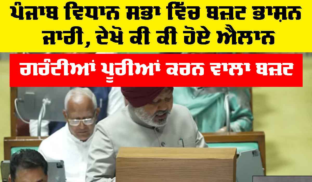 Punjab Budget Live: ਚੰਡੀਗੜ੍ਹ। ਪੰਜਾਬ ਸਰਕਾਰ ਦਾ ਪੰਜਵਾਂ ਬਜ਼ਟ 2026-27 ਅੱਜ ਐਲਾਨਿਆ ਜਾ ਰਿਹਾ ਹੈ। ਵਿਧਾਨ ਸਭਾ ਵਿੱਚ ਵਿੱਤ ਮੰਤਰੀ ਹਰਪਾਲ ਸਿੰਘ ਚੀਮਾ ਬਜ਼ਟ ਪੇਸ਼ ਕਰ ਰਹੇ ਹਨ। 2 ਲੱਖ 60 ਹਜ਼ਾਰ 437 ਕਰੋੜ ਦਾ ਬਜਟ ਪੇਸ਼। ਇਸ ਬਜ਼ਟ ਦੀ ਪੂਰੀ ਕਾਰਵਾਈ ਦੇਖਣ ਤੇ ਸੁਨਣ ਲਈ ਹੇਠਾਂ ਦਿੱਤੇ ਗਏ ਲਾਈਵ Link ’ਤੇ ਕਲਿੱਕ ਕਰਕੇ ਦੇਖ ਸਕਦੇ ਹੋ।