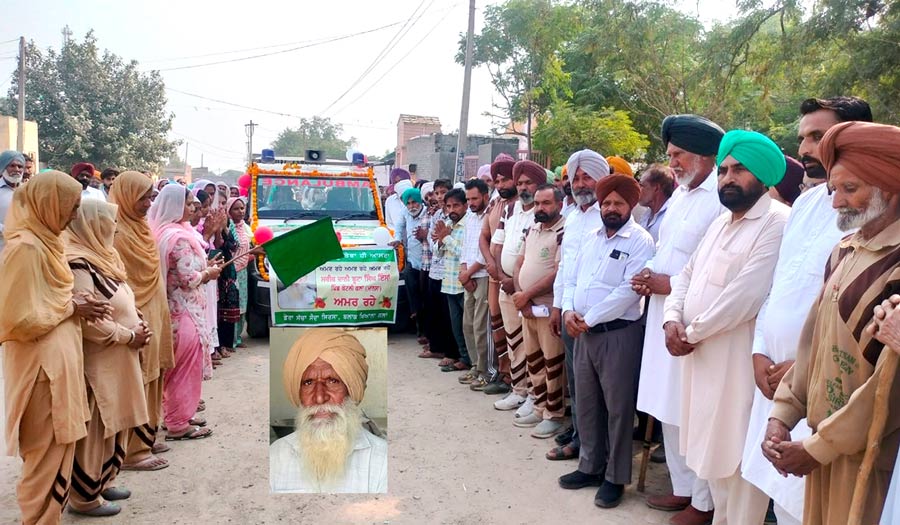 ਮਾਨਸਾ: ਮ੍ਰਿਤਕ ਦੇਹ ਵਾਲੀ ਐਂਬੂਲੈਂਸ ਨੂੰ ਹਰੀ ਝੰਡੀ ਦੇ ਕੇ ਰਵਾਨਾ ਕਰਦੇ ਹੋਏ ਸਰਪੰਚ ਜਸਵਿੰਦਰ ਕੌਰ ਅਤੇ ਸਾਧ-ਸੰਗਤ ਤੇ ਹੇਠਾਂ ਸਰੀਰਦਾਨੀ ਦੀ ਪੁਰਾਣੀ ਫੋਟੋ ਤਸਵੀਰ: ਸੱਚ ਕਹੂੰ ਨਿਊਜ਼
