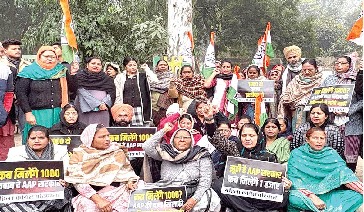 Women Schemes Punjab: ਪਟਿਆਲਾ (ਖੁਸ਼ਵੀਰ ਸਿੰਘ ਤੂਰ)। ਮਨਰੇਗਾ ਕਾਨੂੰਨਾਂ ਦੇ ਵਿਰੋਧ ਤਹਿਤ ਬੁੱਧਵਾਰ ਨੂੰ ਪੰਜਾਬ ਮਹਿਲਾ ਕਾਂਗਰਸ ਦੇ ਪ੍ਰਧਾਨ ਗੁਰਸ਼ਰਨ ਕੌਰ ਰੰਧਾਵਾ, ਜ਼ਿਲ੍ਹਾ ਪ੍ਰਧਾਨ ਰੇਖਾ ਅਗਰਵਾਲ ਤੇ ਭੁਪਿੰਦਰ ਕੌਰ ਦੀ ਅਗਵਾਈ ਪੰਜਾਬ ਦੀ ਆਪ ਸਰਕਾਰ ਵੱਲੋਂ ਔਰਤਾਂ ਨਾਲ ਕੀਤੇ ਗਏ ਵੱਡੇ ਧੋਖੇ ਦੇ ਵਿਰੋਧ ਵਿੱਚ, ਹਰ ਔਰਤ ਨੂੰ ਹਜ਼ਾਰ ਰੁਪਏ ਮਹੀਨਾ ਦੇਣ ਦੀ ਮੰਗ ਰੱਖਦੇ ਹੋਏ ਡੀਸੀ ਦਫਤਰ ਪਟਿਆਲਾ ਵਿਖੇ ਰੋਸ ਧਰਨਾ ਦਿੱਤਾ ਗਿਆ। ਇਸੇ ਦੌਰਾਨ ਪ੍ਰੈਸ ਨੂੰ ਸੰਬੋਧਨ ਕਰਦਿਆਂ ਗੁਰਸ਼ਰਨ ਕੌਰ ਰੰਧਾਵਾ ਨੇ ਕਿਹਾ ਕਿ ਇੱਕ ਪਾਸੇ ਪੰਜਾਬ ਮਹਿਲਾ ਕਾਂਗਰਸ ਔਰਤਾਂ ਦੇ ਹੱਕਾਂ ਲਈ ਆਪਣੀ ਲੜਾਈ ਲੜ ਰਹੀ ਹੈ।