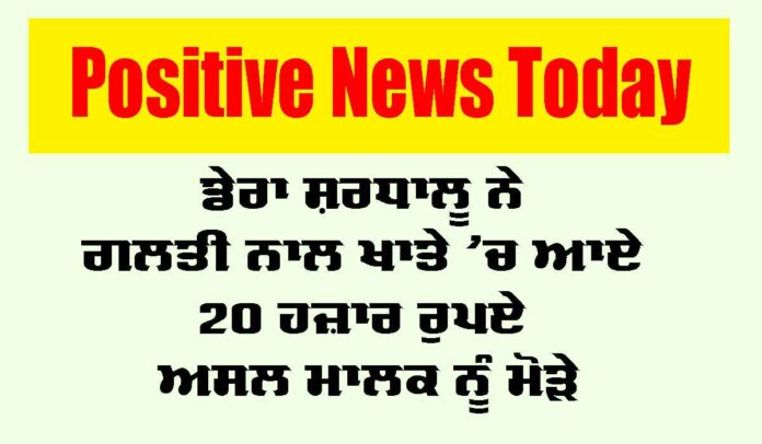 ਇਸ ਸਬੰਧੀ ਜਾਣਕਾਰੀ ਦਿੰਦਿਆਂ ਬਲਾਕ ਭਲਵਾਨ ਦੇ ਪ੍ਰੇਮੀ ਸੇਵਕ ਬਲਵਿੰਦਰ ਸਿੰਘ ਇੰਸਾਂ ਨੇ ਦੱਸਿਆ ਕਿ ਚਮਕੌਰ ਸਿੰਘ ਫੌਜੀ ਜੋ ਕਿ ਪਿੰਡ ਭੁੱਲਰਹੇੜੀ ਦਾ ਰਹਿਣ ਵਾਲਾ ਹੈ। ਉਸ ਨੇ ਗਲਤੀ ਨਾਲ 20 ਹਜ਼ਾਰ ਰੁਪਏ ਪ੍ਰੇਮੀ ਭਗਵੰਤ ਸਿੰਘ ਇੰਸਾਂ ਵਾਸੀ ਪਿੰਡ ਭੋਜੋਵਾਲੀ ਦੇ ਖਾਤੇ ’ਚ ਪਾ ਦਿੱਤੇ ਸਨ। Sangrur News