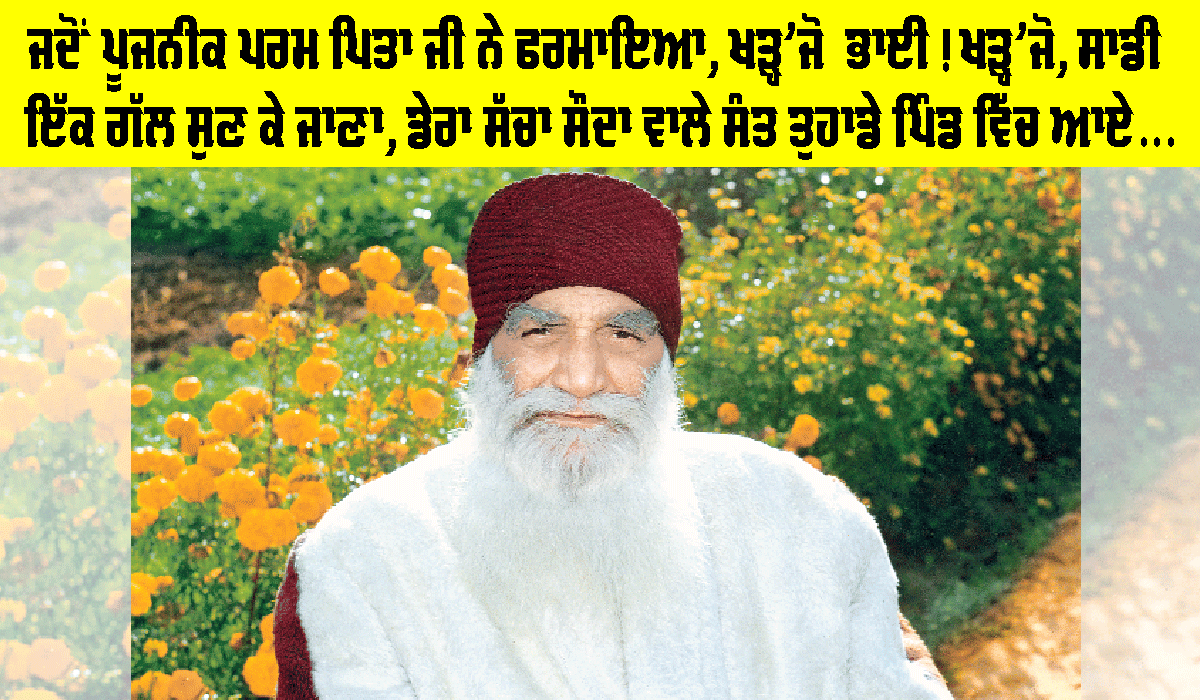 ਪਰਮ ਦਿਆਲੂ ਦਾਤਾਰ ਜੀ ਨੇ ਉਨ੍ਹਾਂ ’ਤੇ ਦਇਆ ਕਰਦਿਆਂ ਉੱਚੀ ਆਵਾਜ਼ ’ਚ ਫ਼ਰਮਾਇਆ ‘‘ਖੜ੍ਹ’ਜੋ ਭਾਈ! ਖੜ੍ਹ’ਜੋ, ਸਾਡੀ ਇੱਕ ਗੱਲ ਸੁਣ ਕੇ ਜਾਣਾ।’’ ਇੰਨਾ ਕਹਿਣ ’ਤੇ ਉਹ ਸਾਰੇ ਰੁਕ ਗਏ। ਪਿਆਰੇ ਗੁਰੂ ਜੀ ਨੇ ਫ਼ਰਮਾਇਆ, ‘‘ਜਿਸ ਸਮੇਂ ਕਾਲ ਆਵੇਗਾ, ਇਹ ਸਤਿਸੰਗ ਦਾ ਸਾਰਾ ਪ੍ਰੋਗਰਾਮ ਇੱਕ ਫ਼ਿਲਮ ਵਾਂਗ ਤੁਹਾਡੇ ਸਾਹਮਣੇ ਆ ਜਾਵੇਗਾ। ਇੱਕ ਫਿਲਮ ਵਾਂਗ ਧਰਮਰਾਜ ਦੇ ਦਰਬਾਰ ’ਚ ਤੁਹਾਨੂੰ ਵਿਖਾਇਆ ਜਾਵੇਗਾ ਕਿ ਸੱਚੇ ਸੌਦੇ ਵਾਲੇ ਸੰਤ ਤੁਹਾਡੇ ਪਿੰਡ ’ਚ ਆਏ, ਢੋਲ ਵਜਾ-ਵਜਾ ਕੇ ਪਿੰਡ ’ਚ ਐਲਾਨ ਕਰਵਾਇਆ ਤੇ ਸੰਤਾਂ ਨੇ ਸਤਿਸੰਗ ਸੁਣਾ ਕੇ ਬੜਾ ਹੀ ਸਮਝਾਇਆ।