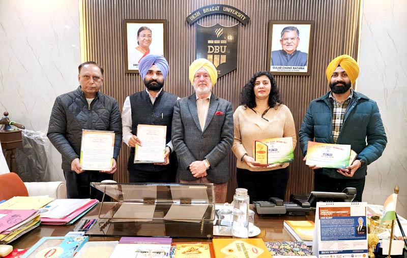 Desh Bhagat University: (ਅਨਿਲ ਲੁਟਾਵਾ) ਅਮਲੋਹ। ਗਣਤੰਤਰ ਦਿਵਸ ਦੇ ਮਾਣਮੱਤੇ ਮੌਕੇ ’ਤੇ ਦੇਸ਼ ਭਗਤ ਯੂਨੀਵਰਸਿਟੀ (ਡੀਬੀਯੂ) ਦੇ ਅਧਿਕਾਰੀਆਂ ਨੂੰ ਜ਼ਿਲ੍ਹਾ ਪ੍ਰਸ਼ਾਸਨ ਵੱਲੋਂ ਭਾਈਚਾਰੇ ਪ੍ਰਤੀ ਉਨ੍ਹਾਂ ਦੀਆਂ ਮਿਸਾਲੀ ਸੇਵਾਵਾਂ ਦੇ ਸਨਮਾਨ ਵਜੋਂ ਪ੍ਰਮਾਣ ਪੱਤਰ ਨਾਲ ਸਨਮਾਨਿਤ ਕੀਤਾ ਗਿਆ। ਫ਼ਤਹਿਗੜ੍ਹ ਸਾਹਿਬ ਦੀ ਡਿਪਟੀ ਕਮਿਸ਼ਨਰ ਡਾ.ਸੋਨਾ ਥਿੰਦ ਨੇ ਪੰਜਾਬ ਸਰਕਾਰ ਵੱਲੋਂ ਡਾ. ਕੁਲਭੂਸ਼ਣ ਡਾਇਰੈਕਟਰ ਕੈਂਪਸ ਅਤੇ ਡਾ. ਪ੍ਰਭਜੋਤ ਸਿੰਘ ਡਿਪਟੀ ਡਾਇਰੈਕਟਰ ਨਰਸਿੰਗ ਨੂੰ ਸਰਟੀਫਿਕੇਟ ਪ੍ਰਦਾਨ ਕੀਤੇ। ਇਹ ਸਨਮਾਨ ਫ਼ਤਹਿਗੜ੍ਹ ਸਾਹਿਬ ਜ਼ਿਲ੍ਹੇ ਪ੍ਰਤੀ ਉਨ੍ਹਾਂ ਦੇ ਸਮਰਪਿਤ ਅਤੇ ਸ਼ਲਾਘਾਯੋਗ ਯੋਗਦਾਨ ਦੀ ਪ੍ਰਸ਼ੰਸਾ ਵਿੱਚ ਦਿੱਤਾ ਗਿਆ।