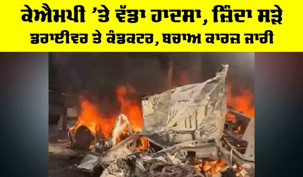 KMP Expressway Accident: ਨੂਹ (ਸੱਚ ਕਹੂੰ ਨਿਊਜ਼)। ਐਤਵਾਰ ਸਵੇਰੇ ਨੂਹ ’ਚ ਕੁੰਡਲੀ-ਮਾਨੇਸਰ-ਪਲਵਲ (ਕੇਐਮਪੀ) ਐਕਸਪ੍ਰੈਸਵੇਅ ’ਤੇ ਇੱਕ ਸੜਕ ਹਾਦਸੇ ’ਚ ਦੋ ਲੋਕਾਂ ਦੀ ਸੜ ਕੇ ਮੌਤ ਹੋ ਗਈ। ਪੰਜ ਭਾਰੀ ਵਾਹਨ ਆਪਸ ’ਚ ਟਕਰਾ ਗਏ, ਜਿਸ ਕਾਰਨ ਵੱਡਾ ਟ੍ਰੈਫਿਕ ਜਾਮ ਹੋ ਗਿਆ ਤੇ ਆਵਾਜਾਈ ’ਚ ਭਾਰੀ ਵਿਘਨ ਪਿਆ। ਇਹ ਹਾਦਸਾ ਸਵੇਰੇ 8:30 ਵਜੇ ਦੇ ਕਰੀਬ ਮੁਹੰਮਦਪੁਰ ਅਹੀਰ ਪੁਲਿਸ ਸਟੇਸ਼ਨ ਦੇ ਅਧਿਕਾਰ ਖੇਤਰ ਅਧੀਨ ਆਉਂਦੇ ਸਬਰਾਸ ਤੇ ਗੁਡ ਪਿੰਡਾਂ ਦੇ ਨੇੜੇ ਵਾਪਰਿਆ। ਜਾਣਕਾਰੀ ਅਨੁਸਾਰ, ਐਕਸਪ੍ਰੈਸਵੇਅ ’ਤੇ ਯਾਤਰਾ ਕਰ ਰਹੇ ਦੋ ਟ੍ਰੇਲਰਾਂ ਨੇ ਅਚਾਨਕ ਬ੍ਰੇਕ ਲਾਈ, ਜਿਸ ਕਾਰਨ ਇੱਕ ਕੰਟੇਨਰ ਟਰੱਕ ਤੇ ਪਿੱਛੇ ਤੋਂ ਆ ਰਹੇ ਦੋ ਹੋਰ ਟਰੱਕ ਉਨ੍ਹਾਂ ਨਾਲ ਟਕਰਾ ਗਏ।