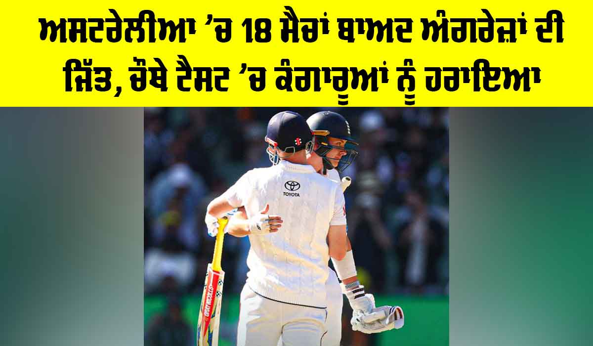 AUS vs ENG: ਸਪੋਰਟਸ ਡੈਸਕ। ਇੰਗਲੈਂਡ ਨੇ ਐਸ਼ੇਜ਼ ਸੀਰੀਜ਼ ਦੇ ਚੌਥੇ ਟੈਸਟ ’ਚ ਅਸਟਰੇਲੀਆ ਨੂੰ ਚਾਰ ਵਿਕਟਾਂ ਨਾਲ ਹਰਾਇਆ। ਇਸ ਨਾਲ ਅਸਟਰੇਲੀਆ ’ਚ ਇੰਗਲੈਂਡ ਦੀ 18 ਮੈਚਾਂ ਦੀ ਜਿੱਤ ਦੀ ਲੜੀ ਖਤਮ ਹੋ ਗਈ। ਅਸਟਰੇਲੀਆ ’ਚ ਇੰਗਲੈਂਡ ਦੀ ਆਖਰੀ ਟੈਸਟ ਜਿੱਤ 2011 ’ਚ ਸਿਡਨੀ ਕ੍ਰਿਕੇਟ ਗਰਾਊਂਡ ਵਿੱਚ ਹੋਈ ਸੀ। ਇਸ ਤੋਂ ਬਾਅਦ ਦੇ 18 ਟੈਸਟਾਂ ਵਿੱਚੋਂ, ਅਸਟਰੇਲੀਆ ਨੇ 16 ਜਿੱਤੇ ਅਤੇ ਦੋ ਡਰਾਅ ਕੀਤੇ। ਇੰਗਲੈਂਡ ਦੀ ਜਿੱਤ ਰਹਿਤ ਲੜੀ 2013-14 ਐਸ਼ੇਜ਼ ਸੀਰੀਜ਼ ’ਚ 5-0 ਦੀ ਹਾਰ ਤੋਂ ਬਾਅਦ ਸ਼ੁਰੂ ਹੋਈ। ਸ਼ਨਿੱਚਰਵਾਰ ਨੂੰ, ਮੈਚ ਦੇ ਦੂਜੇ ਦਿਨ, ਅਸਟਰੇਲੀਆ ਨੇ ਇੰਗਲੈਂਡ ਨੂੰ 175 ਦੌੜਾਂ ਦਾ ਟੀਚਾ ਦਿੱਤਾ।
