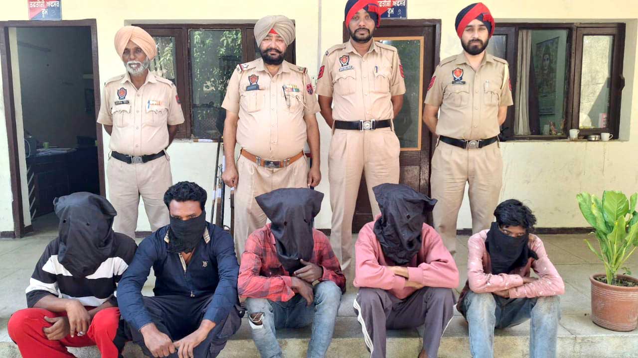 Robbery Gang: (ਗੁਰਪ੍ਰੀਤ ਪੱਕਾ) ਫ਼ਰੀਦਕੋਟ। ਡਾ. ਪ੍ਰਗਿਆ ਜੈਨ ਆਈ.ਪੀ.ਐਸ ਐਸ.ਐਸ.ਪੀ ਫਰੀਦਕੋਟ ਦੀ ਅਗਵਾਈ ਹੇਠ ਫ਼ਰੀਦਕੋਟ ਪੁਲਿਸ ਵੱਲੋਂ ਲੁੱਟਾ-ਖੋਹਾਂ ਅਤੇ ਚੋਰੀ ਦੀਆਂ ਵਾਰਦਾਤਾਂ ਵਿੱਚ ਸ਼ਾਮਲ ਵਿਅਕਤੀਆਂ ਖਿਲਾਫ ਸਖਤ ਕਾਰਵਾਈ ਕੀਤੀ ਜਾ ਰਹੀ ਹੈ। ਇਸੇ ਤਹਿਤ ਇੱਕ ਹੋਰ ਸਫਲਤਾ ਹਾਸਲ ਕਰਦਿਆਂ ਥਾਣਾ ਸਿਟੀ ਕੋਟਕਪੂਰਾ ਵੱਲੋਂ ਲੁੱਟ-ਖੋਹ ਕਰਨ ਫਿਰਾਕ ਵਿੱਚ ਬੈਠੇ ਗਿਰੋਹ ਦੇ 5 ਵਿਅਕਤੀਆਂ ਨੂੰ ਵਾਰਦਾਤ ਕਰਨ ਤੋਂ ਪਹਿਲਾ ਹੀ ਕਾਬੂ ਕੀਤਾ ਗਿਆ ਹੈ। ਇਹ ਜਾਣਕਾਰੀ ਜਤਿੰਦਰ ਸਿੰਘ ਡੀ.ਐਸ.ਪੀ(ਸ.ਡ) ਕੋਟਕਪੂਰਾ ਵੱਲੋਂ ਪ੍ਰੈਸ ਕਾਨਫਰੰਸ ਦੌਰਾਨ ਦਿੱਤੀ ਗਈ।