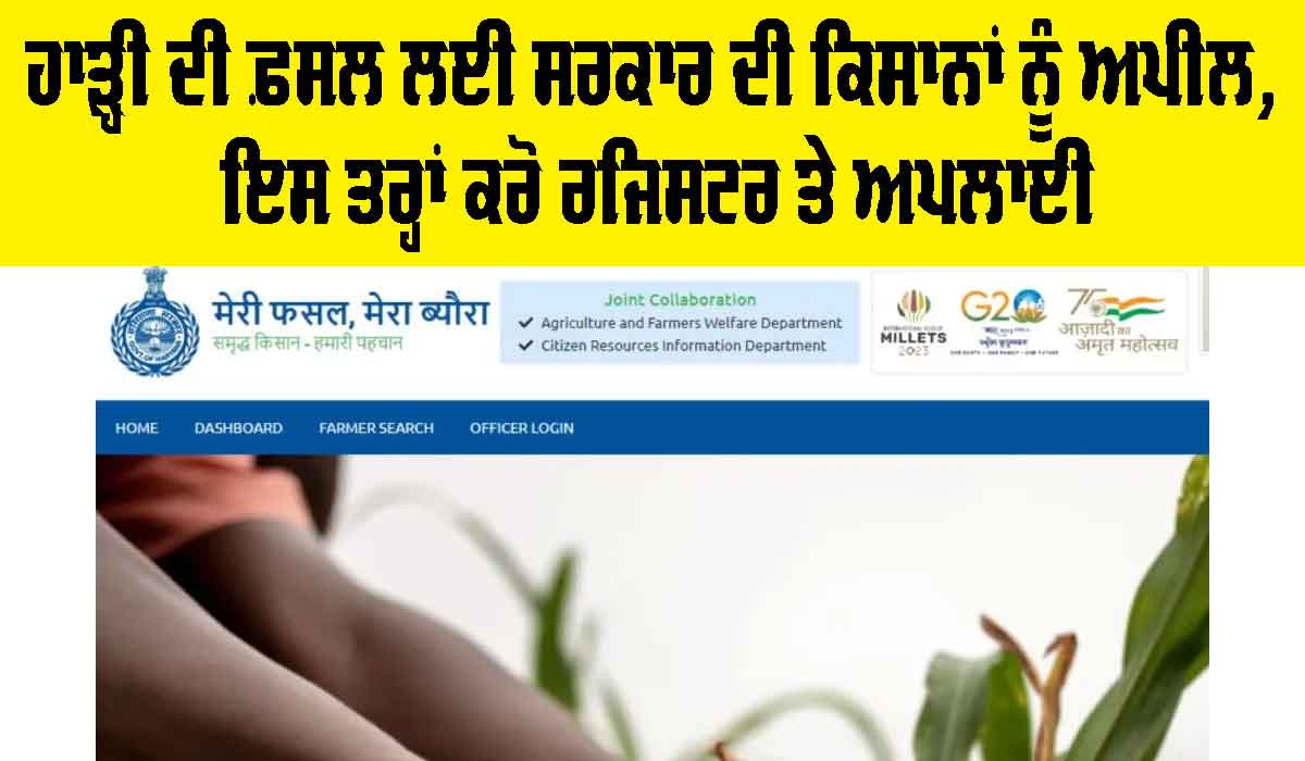 Meri Fasal Mera Byora: ਹਾੜ੍ਹੀ ਦੀ ਫ਼ਸਲ ਲਈ ਸਰਕਾਰ ਦੀ ਕਿਸਾਨਾਂ ਨੂੰ ਅਪੀਲ, ਇਸ ਤਰ੍ਹਾਂ ਕਰੋ ਰਜਿਸਟਰ ਤੇ ਅਪਲਾਈ