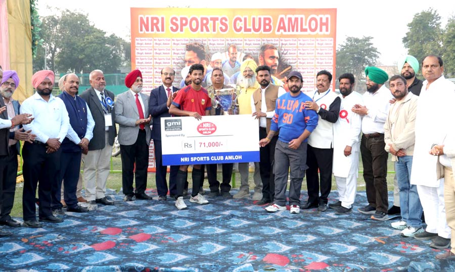 (ਅਨਿਲ ਲੁਟਾਵਾ) ਅਮਲੋਹ। ਸਵ. ਹੈਪੀ ਸੇਢਾ ਦੀ ਨਿੱਘੀ ਯਾਦ ’ਚ ਐਨਆਰਆਈ ਸਪੋਰਟਸ ਕਲੱਬ ਰਜਿ.ਅਮਲੋਹ ਵੱਲੋਂ ਚਾਰ ਰੋਜ਼ਾ 15ਵਾਂ ਆਲ ਇੰਡੀਆ ਹਾਕੀ ਟੂਰਨਾਮੈਂਟ ਸਰਕਾਰੀ ਸੀਨੀਅਰ ਸੈਕੰਡਰੀ ਸਕੂਲ (ਲੜਕੇ) ਸਕੂਲ ਆਫ਼ ਐਮੀਨੈਂਸ ਦੇ ਗਰਾਊਂਡ ’ਚ ਚੱਲ ਰਿਹਾ ਟੂਰਨਾਮੈਂਟ ਸ਼ਾਨੋ-ਸ਼ੌਕਤ ਨਾਲ ਸਮਾਪਤ ਹੋਇਆ। ਟੂਰਨਾਮੈਂਟ ’ਚ ਚੇਅਰਮੈਨ ਬਲਵਿੰਦਰ ਸਿੰਘ ਘਟੌੜੇ, ਜਗਦੀਪ ਸਿੰਘ ਚੀਮਾ, ਪ੍ਰਦੀਪ ਗਰਗ, ਚਰਨਜੀਤ ਅਬਰੋਲ, ਮੈਡਮ ਸੁਖਵਿੰਦਰ ਕੌਰ ਗਹਿਲੋਤ ਚੇਅਰਪਰਸਨ ਮਾਰਕੀਟ ਕਮੇਟੀ ਅਮਲੋਹ, ਠੇਕੇਦਾਰ ਜਤਿੰਦਰ ਬੰਨਸਾਲ, ਚਤਿੰਦਰ ਸ਼ਰਮਾ ਤਹਿਸੀਲਦਾਰ, ਸੁਰਜੀਤ ਸਿੰਘ ਚੀਮਾ ਮੁੱਖ ਮਹਿਮਾਨ ਵਜੋਂ ਸ਼ਾਮਲ ਹੋਏ ’ਤੇ ਓਲੰਪੀਅਨ ਗੁਨਦੀਪ ਕੁਮਾਰ ਧਿਆਨ ਚੰਦ ਐਵਾਰਡੀ, ਚਰਨਜੀਤ ਕੁਮਾਰ ਗੋਲਡ ਮੈਡਲਿਸਟ ਉਲੰਪੀਅਨ ਹਾਕੀ, ਮਾਧਵ ਕੇਆਰਜੀ ਗਰੁੱਪ ਮੰਡੀ ਗੋਬਿੰਦਗੜ ਦੇ ਏਜੀਐਮ ਰਾਜੀਵ ਸ਼ਰਮਾ,ਮੈਡਮ ਗਿਤੀਕਾ,ਗੁਰਮੀਤ ਸਿੰਘ,ਅਮਨਦੀਪ ਧੀਮਾਨ ਐਮਡੀਏਡੀ ਇਮੀਗ੍ਰੇਸ਼ਨ, ਜਸਵੀਰ ਸਿੰਘ ਰਿਟਾਇਰਡ ਐਸਪੀ, ਸੰਜੇ ਗੋਇਲ ਜੀਸੀਐਲ ਕਲੱਬ ਮੰਡੀ ਗੋਬਿੰਦਗੜ੍ਹ,ਐਸਕੇ ਚੋਪੜਾ,ਸੁਸ਼ੀਲ ਗਰਗ ਨੇ ਵਿਸ਼ੇਸ਼ ਮਹਿਮਾਨ ਵੱਜੋਂ ਸ਼ਿਰਕਤ ਕੀਤੀ।