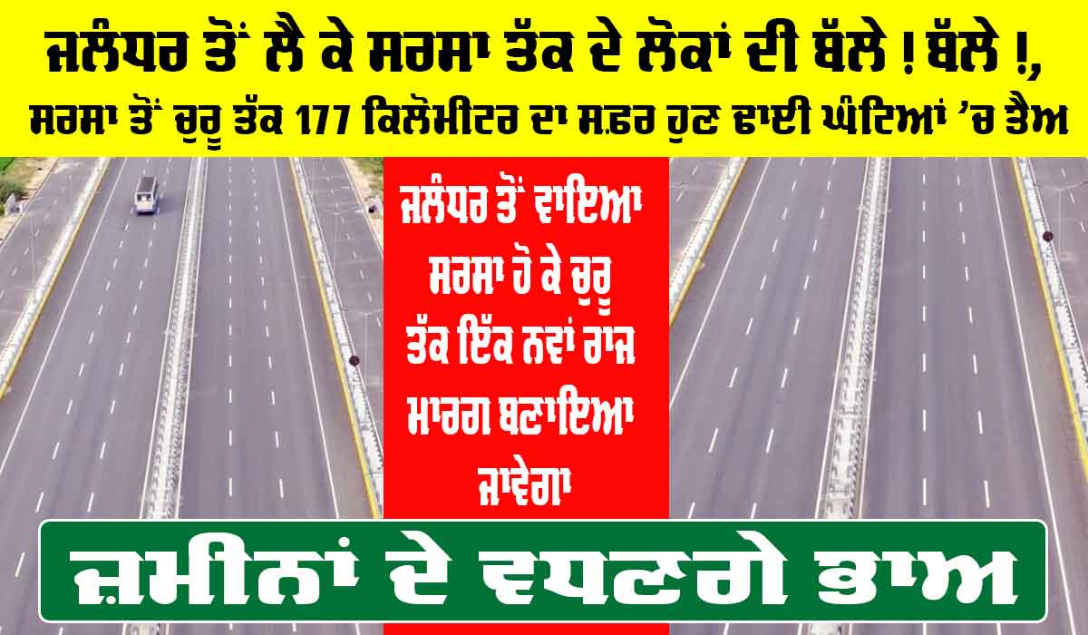Haryana Punjab Highway Project: ਜਲੰਧਰ ਤੋਂ ਲੈ ਕੇ ਸਰਸਾ ਤੱਕ ਦੇ ਲੋਕਾਂ ਦੀ ਬੱਲੇ! ਬੱਲੇ!, ਸਰਸਾ ਤੋਂ ਚੁਰੂ ਤੱਕ 177 ਕਿਲੋਮੀਟਰ ਦਾ ਸਫ਼ਰ ਹੁਣ ਢਾਈ ਘੰਟਿਆਂ ’ਚ ਤੈਅ