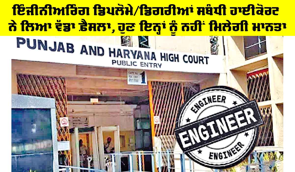 Engineering Diplomas and Degrees: ਸੱਚ ਕਹੂੰ/ਸੰਦੀਪ ਸਿੰਹਮਾਰ (ਚੰਡੀਗੜ੍ਹ/ਹਿਸਾਰ)। ਪੰਜਾਬ ਅਤੇ ਹਰਿਆਣਾ ਹਾਈ ਕੋਰਟ ਨੇ ਸਪੱਸ਼ਟ ਕੀਤਾ ਹੈ ਕਿ ਡਿਸਟੈਂਸ ਐਜੂਕੇਸ਼ਨ ਰਾਹੀਂ ਪ੍ਰਾਪਤ ਕੀਤੇ ਇੰਜੀਨੀਅਰਿੰਗ ਡਿਪਲੋਮੇ/ਡਿਗਰੀਆਂ ਨੂੰ ਨਾ ਤਾਂ ਮਨਜ਼ੂਰੀ ਦਿੱਤੀ ਜਾਂਦੀ ਹੈ ਅਤੇ ਨਾ ਹੀ ਮਾਨਤਾ ਦਿੱਤੀ ਜਾਂਦੀ ਹੈ ਜਦੋਂ ਤੱਕ ਉਨ੍ਹਾਂ ਨੂੰ ਆਲ ਇੰਡੀਆ ਕੌਂਸਲ ਫਾਰ ਟੈਕਨੀਕਲ ਐਜੂਕੇਸ਼ਨ ਦੀ ਪ੍ਰਵਾਨਗੀ ਨਹੀਂ ਮਿਲਦੀ।
