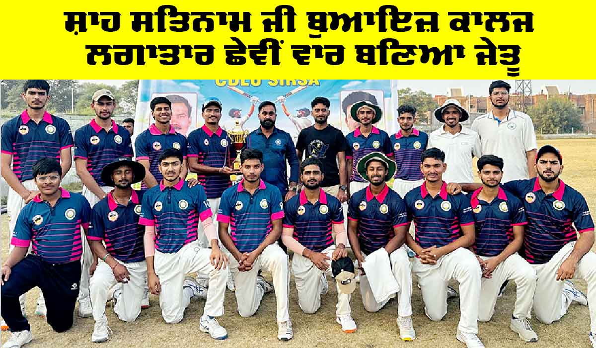 Inter-College Cricket Tournament: ਸਰਸਾ (ਸੱਚ ਕਹੂੰ/ਸੁਨੀਲ ਵਰਮਾ)। ਚੌਧਰੀ ਦੇਵੀ ਲਾਲ ਯੂਨੀਵਰਸਿਟੀ ਸਰਸਾ ਵੱਲੋਂ ਕਰਵਾਏ ਇੰਟਰ ਕਾਲਜ ਕ੍ਰਿਕਟ ਟੂਰਨਾਮੈਂਟ ’ਚ ਸ਼ਾਹ ਸਤਿਨਾਮ ਜੀ ਬੁਆਇਜ਼ ਕਾਲਜ, ਸਰਸਾ ਨੇ ਇੱਕ ਵਾਰ ਫਿਰ ਆਪਣਾ ਦਬਦਬਾ ਕਾਇਮ ਰੱਖਦਿਆਂ ਲਗਾਤਾਰ ਛੇਵੀਂ ਵਾਰ ਚੈਂਪੀਅਨਸ਼ਿਪ ਆਪਣੇ ਨਾਂਅ ਕੀਤੀ। ਪੂਜਨੀਕ ਗੁਰੂ ਸੰਤ ਡਾ. ਗੁਰਮੀਤ ਰਾਮ ਰਹੀਮ ਸਿੰਘ ਜੀ ਇੰਸਾਂ ਦੇ ਪਵਿੱਤਰ ਅਸ਼ੀਰਵਾਦ ਅਤੇ ਖਿਡਾਰੀਆਂ ਦੀ ਸਖ਼ਤ ਮਿਹਨਤ ਦੇ ਦਮ ’ਤੇ ਟੀਮ ਨੇ ਟੂਰਨਾਮੈਂਟ ’ਚ ਸ਼ਾਨਦਾਰ ਪ੍ਰਦਰਸ਼ਨ ਕੀਤਾ ਤੇ ਹਰ ਮੁਕਾਬਲੇ ’ਚ ਵਿਰੋਧੀਆਂ ਨੂੰ ਹਰਾਇਆ ਟੂਰਨਾਮੈਂਟ ਦੀ ਸ਼ੁਰੂਆਤ ਜੇਸੀਡੀ ਸਰਸਾ ਮੈਦਾਨ ਤੋਂ ਹੋਈ, ਜਿੱਥੇ ਪਹਿਲੇ ਮੁਕਾਬਲੇ ’ਚ ਡਿਫੈਂਸ ਕਾਲਜ ਟੋਹਾਣਾ ਨੂੰ ਸ਼ਾਹ ਸਤਿਨਾਮ ਜੀ ਬੁਆਇਜ਼ ਕਾਲਜ ਨੇ ਪਛਾੜ ਦਿੱਤਾ। Sirsa News