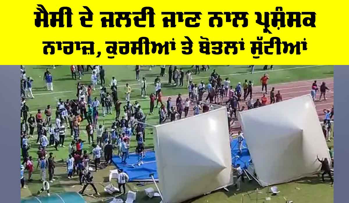 Lionel Messi: ਕੋਲਕਾਤਾ (ਏਜੰਸੀ)। ਅਰਜਨਟੀਨਾ ਦੇ ਮਹਾਨ ਫੁੱਟਬਾਲਰ ਲਿਓਨਲ ਮੈਸੀ 14 ਸਾਲਾਂ ਬਾਅਦ ਸ਼ਨਿੱਚਰਵਾਰ ਨੂੰ ਭਾਰਤ ਪਹੁੰਚੇ। ਉਨ੍ਹਾਂ ਦੇ ਨਾਲ ਉਰੂਗਵੇ ਦੇ ਸਟ੍ਰਾਈਕਰ ਲੁਈਸ ਸੁਆਰੇਜ਼ ਅਤੇ ਅਰਜਨਟੀਨਾ ਦੇ ਮਿਡਫੀਲਡਰ ਰੋਡਰੀਗੋ ਡੀ ਪਾਲ ਵੀ ਸਨ। ਤਿੰਨੋਂ ਫੁੱਟਬਾਲਰ ਕੋਲਕਾਤਾ ਹਵਾਈ ਅੱਡੇ ’ਤੇ ਸਵੇਰੇ 2:30 ਵਜੇ ਦੇ ਕਰੀਬ ਪਹੁੰਚੇ। ਸਵੇਰੇ 11 ਵਜੇ, ਮੈਸੀ ਨੇ ਵਰਚੁਅਲੀ ਆਪਣੇ 70 ਫੁੱਟ ਉੱਚੇ ਬੁੱਤ ਦਾ ਉਦਘਾਟਨ ਕੀਤਾ, ਜਿਸ ’ਚ ਬਾਲੀਵੁੱਡ ਅਦਾਕਾਰ ਸ਼ਾਹਰੁਖ ਖਾਨ ਵੀ ਸ਼ਾਮਲ ਹੋਏ। ਸਮਾਰੋਹ ਤੋਂ ਬਾਅਦ, ਖਿਡਾਰੀ ਸਾਲਟ ਲੇਕ ਸਟੇਡੀਅਮ ਪਹੁੰਚੇ, ਜਿੱਥੇ ਉਨ੍ਹਾਂ ਨੇ ਪ੍ਰਸ਼ੰਸਕਾਂ ਨਾਲ ਮੁਲਾਕਾਤ ਕੀਤੀ। ਹਾਲਾਂਕਿ, ਤਿੰਨੋਂ ਖਿਡਾਰੀ ਲਗਭਗ 22 ਮਿੰਟ ਬਾਅਦ ਚਲੇ ਗਏ। ਇਸ ਕਾਰਨ ਗੁੱਸੇ ’ਚ ਆਏ ਪ੍ਰਸ਼ੰਸਕਾਂ ਨੇ ਸਟੇਡੀਅਮ ਵਿੱਚ ਹੰਗਾਮਾ ਕੀਤਾ, ਸਟੈਂਡਾਂ ਤੋਂ ਬੋਤਲਾਂ ਤੇ ਕੁਰਸੀਆਂ ਸੁੱਟੀਆਂ।
