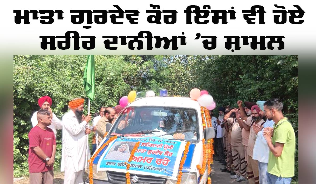 Body Donation: (ਨਰਿੰਦਰ ਸਿੰਘ ਬਠੋਈ) ਪਟਿਆਲਾ। ਡੇਰਾ ਸੱਚਾ ਸੌਦਾ ਸ਼ਰਧਾਲੂ ਜਿਊਦੇ ਜੀਅ ਤਾਂ ਮਾਨਵਤਾ ਭਲਾਈ ਕੰਮਾਂ ਨੂੰ ਵੱਧ ਤੋਂ ਵੱਧ ਅੰਜਾਮ ਦਿੰਦੇ ਹੀ ਹਨ, ਇਹ ਦੇਹਾਂਤ ਤੋਂ ਬਾਅਦ ਵੀ ਦੂਜਿਆਂ ਲਈ ਮਿਸਾਲ ਬਣਦੇ ਹਨ। ਜੀ ਹਾਂ ਅਸੀਂ ਗੱਲ ਕਰ ਰਹੇ ਡੇਰਾ ਸ਼ਰਧਾਲੂ ਮਾਤਾ ਗੁਰਦੇਵ ਕੌਰ ਇੰਸਾਂ ਪਿੰਡ ਸ਼ੇਰ ਮਾਜਰਾ ਬਲਾਕ ਬਠੋਈ-ਡਕਾਲਾ ਦੀ ਜਿੰਨ੍ਹਾਂ ਨੇ ਪੂਜਨੀਕ ਗੁਰੂ ਸੰਤ ਡਾ. ਗੁਰਮੀਤ ਰਾਮ ਰਹੀਮ ਸਿੰਘ ਜੀ ਇੰਸਾਂ ਦੀ ਪਵਿੱਤਰ ਪ੍ਰੇਰਨਾ ਚੱਲਦਿਆਂ ਆਪਣੀ ਇੱਛਾ ਅਨੁਸਾਰ ਦੇਹਾਂਤ ਉਪਰੰਤ ਸਰੀਰਦਾਨ ਕਰਨ ਦਾ ਫਾਰਮ ਭਰਿਆ ਹੋਇਆ ਸੀ। ਇਸ ਤਹਿਤ ਪਰਿਵਾਰ ਮਾਤਾ ਜੀ ਦੀ ਅੰਤਿਮ ਇੱਛਾ ’ਤੇ ਫੁੱਲ ਚੜਾਉਦਿਆ ਮਾਤਾ ਗੁਰਦੇਵ ਕੌਰ ਇੰਸਾਂ ਦਾ ਮ੍ਰਿਤਕ ਸਰੀਰ ਸੰਸਕਰਮ ਆਯੁਰਵੈਦਿਕ ਮੈਡੀਕਲ ਕਾਲਜ ਅਤੇ ਹਸਪਤਾਲ, ਪਟੌਦਾ, ਝੱਜਰ ਹਰਿਆਣਾ ਨੂੰ ਦਾਨ ਕੀਤਾ ਗਿਆ। ਇਸ ਮੌਕੇ ਮਾਤਾ ਜੀ ਅਰਥੀ ਨੂੰ ਮੋਢਾ ਉਨ੍ਹਾਂ ਦੀ ਨੂੰਹ, ਪੌਤੀ, ਪੁੱਤਰ ਅਤੇ ਪੌਤੇ ਵੱਲੋਂ ਦਿੱਤਾ ਗਿਆ।
