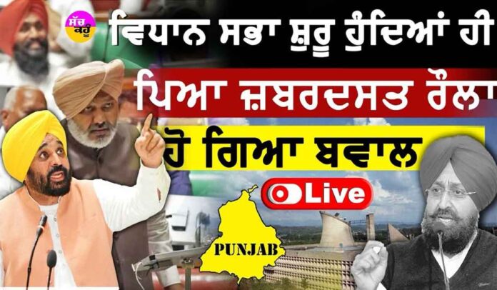 Punjab Budget Session LIVE: ਚੰਡੀਗੜ੍ਹ (ਅਸ਼ਵਨੀ ਚਾਵਲਾ)। ਪੰਜਾਬ ਦੇ ਬਜ਼ਟ ਇਜਲਾਸ ਸਬੰਧੀ ਵਿਧਾਨ ਸਭਾ ਦੀ ਕਾਰਵਾਈ ਸ਼ੁਰੂ ਹੋ ਗਈ ਹੈ। ਕਾਰਵਾਈ ਸ਼ੁਰੂ ਹੁਦਿਆਂ ਹੀ ਰੌਲਾ ਰੱਪਾ ਸ਼ੁਰੂ ਹੋ ਗਿਆ। ਕਾਂਗਰਸ ਵੱਲੋਂ ਆਪਣਾ ਵਿਰੋਧ ਪ੍ਰਦਰਸ਼ਨ ਸ਼ੁਰੂ ਕਰ ਦਿੱਤਾ ਗਿਆ। ਸੰਸਦ ਅੰਦਰ ਜਦੋਂ ਰਾਜਪਾਲ ਆਪਣਾ ਭਾਸ਼ਣ ਪੜ੍ਹ ਰਹੇ ਸਨ ਤਾਂ ਕਾਂਗਰਸ ਵਲੋਂ ਇਸ ਦਾ ਜ਼ਬਰਦਸਤ ਵਿਰੋਧ ਕੀਤਾ ਗਿਆ ਅਤੇ ਪੰਜਾਬ ਸਰਕਾਰ ਖ਼ਿਲਾਫ਼ ਲਗਾਤਾਰ ਨਾਅਰੇਬਾਜ਼ੀ ਕੀਤੀ ਗਈ।