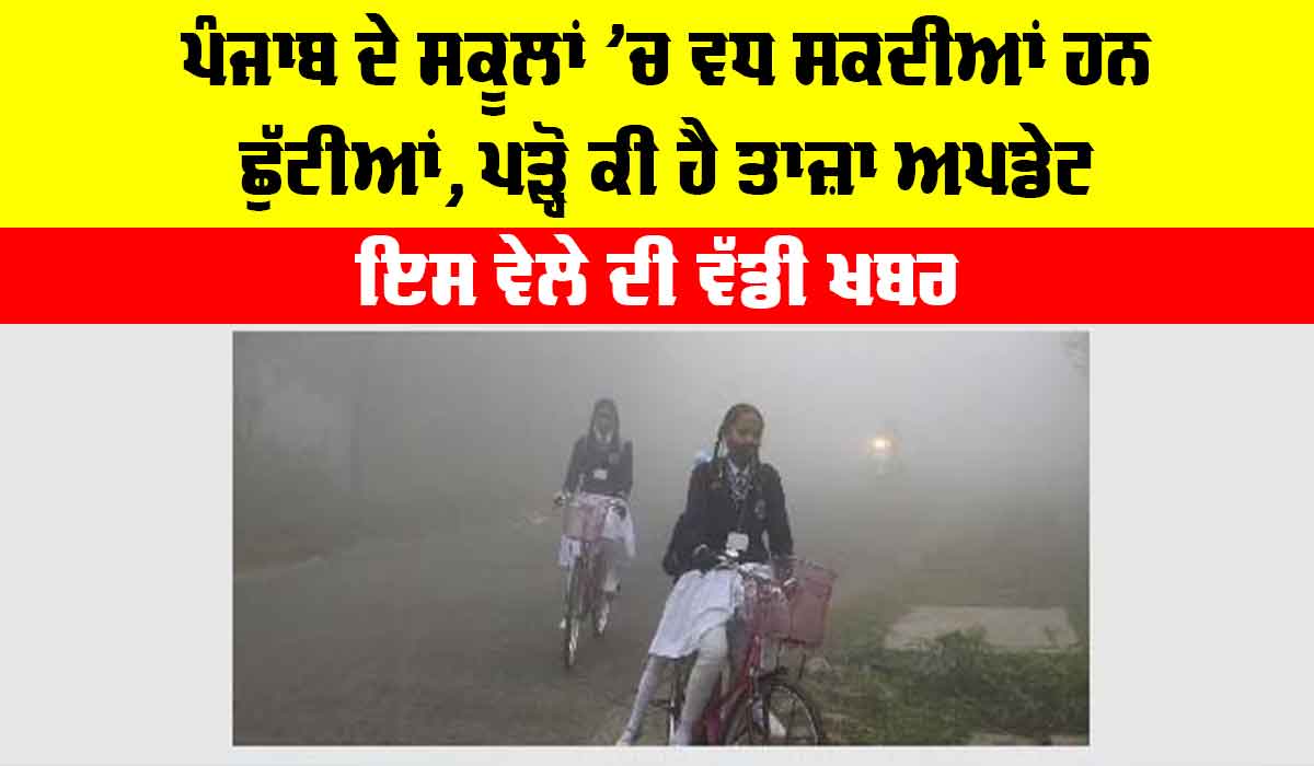 ਇਸ ਦੌਰਾਨ, ਗੁਆਂਢੀ ਸੂਬੇ ਹਰਿਆਣਾ ਦੀ ਸਰਕਾਰ ਨੇ ਪਹਿਲਾਂ ਹੀ 1 ਜਨਵਰੀ ਤੋਂ 15 ਜਨਵਰੀ ਤੱਕ ਸਕੂਲਾਂ ਲਈ ਸਰਦੀਆਂ ਦੀਆਂ ਛੁੱਟੀਆਂ ਦਾ ਐਲਾਨ ਕਰ ਦਿੱਤਾ ਹੈ। ਇਸ ਤੋਂ ਬਾਅਦ, ਮਾਪਿਆਂ, ਵਿਦਿਆਰਥੀਆਂ ਤੇ ਅਧਿਆਪਕਾਂ ਵੱਲੋਂ ਪੰਜਾਬ ’ਚ ਵਧੀਆਂ ਛੁੱਟੀਆਂ ਦੀ ਮੰਗ ਤੇਜ਼ ਹੋ ਗਈ ਹੈ। ਭਾਵੇਂ ਪੰਜਾਬ ਸਰਕਾਰ ਨੇ ਅਜੇ ਤੱਕ ਸਕੂਲਾਂ ਦੀਆਂ ਛੁੱਟੀਆਂ ਸਬੰਧੀ ਕੋਈ ਨਵਾਂ ਜਾਂ ਅਧਿਕਾਰਤ ਨੋਟੀਫਿਕੇਸ਼ਨ ਜਾਰੀ ਨਹੀਂ ਕੀਤਾ ਹੈ, ਪਰ ਮੌਸਮ ਦੀ ਗੰਭੀਰਤਾ ਨੂੰ ਵੇਖਦੇ ਹੋਏ ਉਮੀਦ ਕੀਤੀ ਜਾ ਰਹੀ ਹੈ ਕਿ ਸਰਕਾਰ ਜਲਦੀ ਹੀ ਇਸ ਸਬੰਧ ’ਚ ਕੋਈ ਮਹੱਤਵਪੂਰਨ ਫੈਸਲਾ ਲੈ ਸਕਦੀ ਹੈ। ਹੁਣ ਸਾਰਿਆਂ ਦੀਆਂ ਨਜ਼ਰਾਂ ਸਰਕਾਰ ਦੇ ਅਗਲੇ ਐਲਾਨ ’ਤੇ ਹਨ, ਜਿਸ ਨਾਲ ਬੱਚਿਆਂ ਨੂੰ ਕਠੋਰ ਸਰਦੀ ਤੋਂ ਰਾਹਤ ਮਿਲੇਗੀ। Punjab Winter Holidays