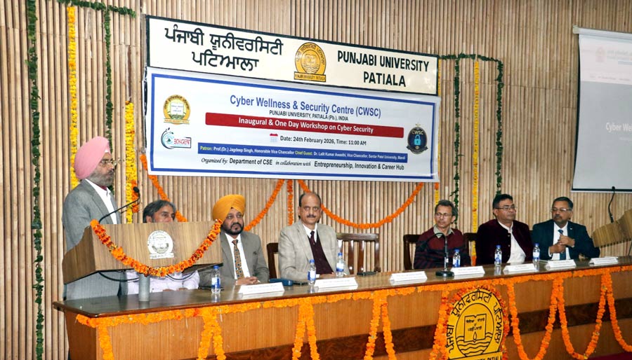 Patiala News: (ਖੁਸ਼ਵੀਰ ਸਿੰਘ ਤੂਰ) ਪਟਿਆਲਾ। ਪੰਜਾਬੀ ਯੂਨੀਵਰਸਿਟੀ ਵੱਲੋਂ ਡਿਜੀਟਲ ਸੁਰੱਖਿਆ ਦੇ ਖੇਤਰ ਵਿੱਚ ਇੱਕ ਵੱਡੀ ਪੁਲਾਂਘ ਪੁੱਟਦਿਆਂ ਕੰਪਿਊਟਰ ਸਾਇੰਸ ਅਤੇ ਇੰਜੀਨੀਅਰਿੰਗ ਵਿਭਾਗ ਵਿਖੇ ‘ਸਾਈਬਰ ਵੈੱਲਨੈੱਸ ਅਤੇ ਸਕਿਉਰਿਟੀ ਸੈਂਟਰ’ ਸਥਾਪਿਤ ਕੀਤਾ ਗਿਆ ਹੈ। ਰੂਸਾ ਗ੍ਰਾਂਟ ਦੀ ਸਹਾਇਤਾ ਨਾਲ਼ ‘ਐਂਟਰਪ੍ਰੀਨਿਓਰਸ਼ਿਪ, ਇਨੋਵੇਸ਼ਨ ਐਂਡ ਕਰੀਅਰ ਹੱਬ’ ਤਹਿਤ ਸਥਾਪਿਤ ਇਸ ਕੇਂਦਰ ਦਾ ਉਦਘਾਟਨ ਉਪ-ਕੁਲਪਤੀ ਡਾ. ਜਗਦੀਪ ਸਿੰਘ ਵੱਲੋਂ ਕੀਤਾ ਗਿਆ।