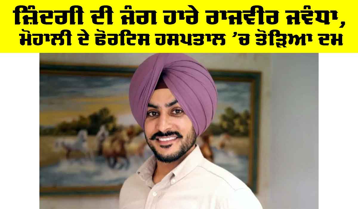Rajveer Jawandha: ਮੋਹਾਲੀ (ਐੱਮ ਕੇ ਸ਼ਾਇਨਾ)। ਪੰਜਾਬੀ ਗਾਇਕ ਰਾਜਵੀਰ ਜਵੰਦਾ ਦਾ ਮੋਹਾਲੀ ਦੇ ਇੱਕ ਨਿੱਜੀ ਹਸਪਤਾਲ ਵਿੱਚ 11 ਦਿਨਾਂ ਤੱਕ ਜ਼ਿੰਦਗੀ ਅਤੇ ਮੌਤ ਦੀ ਲੜਾਈ ਲੜਨ ਤੋਂ ਬਾਅਦ ਦੇਹਾਂਤ ਹੋ ਗਿਆ ਹੈ। ਇਹ ਬਾਰੇ ਫੋਰਟਿਸ ਹਸਪਤਾਲ ਜਲਦ ਜਾਣਕਾਰੀ ਸਾਂਝੀ ਕਰ ਸਕਦਾ ਹੈ। ਫਿਲਹਾਲ ਪਰਿਵਾਰ ਵੱਲੋਂ ਇਸ ਦੀ ਕੋਈ ਅਧਿਕਾਰਿਤ ਜਾਣਕਾਰੀ ਸਾਂਝੀ ਨਹੀਂ ਕੀਤੀ ਗਈ ਹੈ।