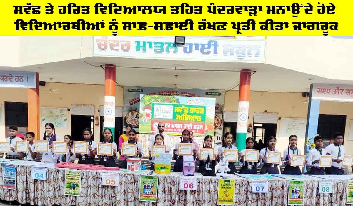 ਜਾਣਕਾਰੀ ਦਿੰਦਿਆਂ ਚੰਦਰ ਮਾਡਲ ਹਾਈ ਸਕੂਲ ਦੇ ਡਾਇਰੈਕਟਰ-ਕਮ-ਪ੍ਰਿੰਸੀਪਲ ਚੰਦਰ ਮੋਹਣ ਸੁਥਾਰ ਅਤੇ ਮੁੱਖ ਅਧਿਆਪਕਾ ਸ਼੍ਰੀਮਤੀ ਰਜਨੀ ਸੁਥਾਰ ਨੇ ਦੱਸਿਆ ਕਿ ਇਸ ਪੰਦਰਵਾੜੇ ਦੌਰਾਨ ਵਿਦਿਆਰਥੀਆਂ ਨੇ ਆਪਣੀ, ਆਸਪਾਸ ਅਤੇ ਸਕੂਲ ਦੀ ਸਾਫ਼-ਸਫ਼ਾਈ ਰੱਖਣ ਦਾ ਪ੍ਰਣ ਲਿਆ। ਇਸ ਤਹਿਤ ਵਿਦਿਅਰਥੀਆਂ ਨੂੰ ਜਿੱਥੇ ਸਵੱਛਤਾ ਪ੍ਰਤੀ ਜਾਗਰੂਕ ਕੀਤਾ ਗਿਆ ਉਥੇ ਆਪਣੇ ਹੱਥਾਂ ਨੂੰ ਖਾਣਾ ਖਾਣ ਤੋਂ ਪਹਿਲਾਂ ਅਤੇ ਬਾਅਦ ਵਿੱਚ ਚੰਗੀ ਤਰ੍ਹਾਂ ਧੋਣ ਬਾਰੇ ਵੀ ਜਾਗਰੂਕ ਕੀਤਾ ਗਿਆ।