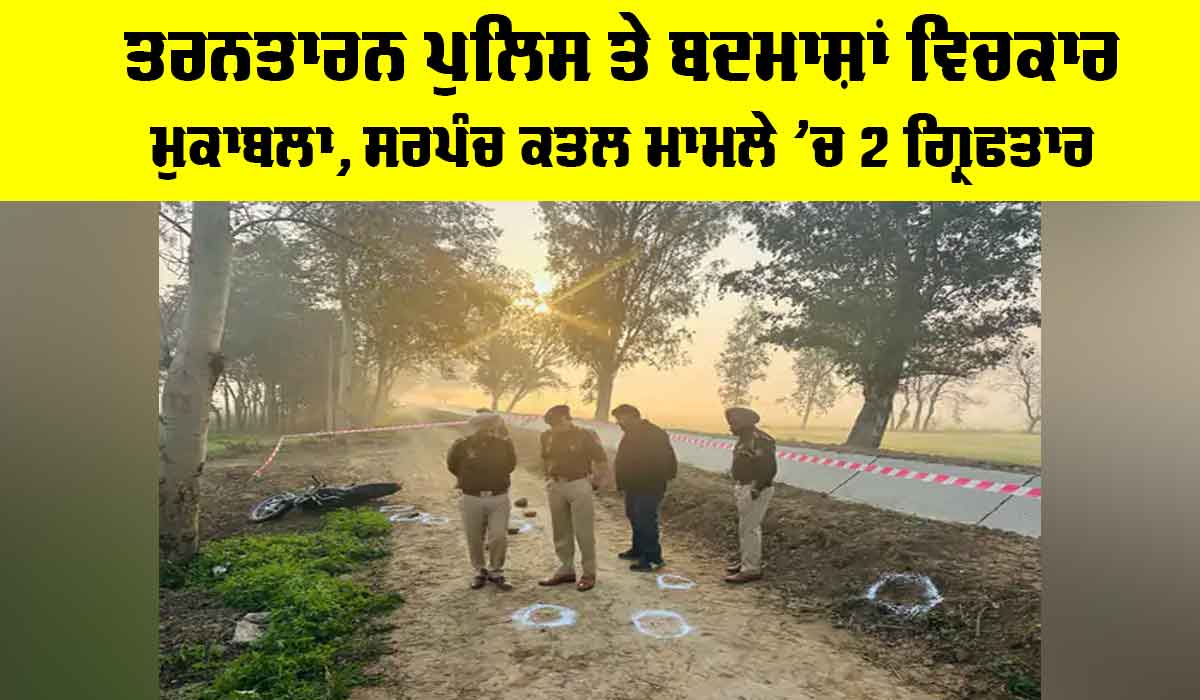 Taran Taran Sarpanch Murder: ਤਰਨਤਾਰਨ (ਸੱਚ ਕਹੂੰ ਨਿਊਜ਼)। ਤਰਨਤਾਰਨ ਪੁਲਿਸ ਨੇ ਇੱਕ ਮੁਕਾਬਲੇ ਤੋਂ ਬਾਅਦ ਸਰਪੰਚ ਕਤਲ ਮਾਮਲੇ ਦੇ ਮੁੱਖ ਮੁਲਜਮ ਸਮੇਤ ਦੋ ਅਪਰਾਧੀਆਂ ਨੂੰ ਗ੍ਰਿਫਤਾਰ ਕਰ ਲਿਆ ਹੈ। ਇਹ ਕਾਰਵਾਈ ਨਸੇਰਾ ਪੰਨੂ ਨੇੜੇ ਹੋਈ, ਜਿੱਥੇ ਦੋਵੇਂ ਮੁਲਜਮ ਗੋਲੀਆਂ ਲੱਗਣ ਕਾਰਨ ਹਸਪਤਾਲ ’ਚ ਭਰਤੀ ਸਨ। ਪੁਲਿਸ ਮੁਖਬਰ ਤੋਂ ਮਿਲੀ ਜਾਣਕਾਰੀ ’ਤੇ ਕਾਰਵਾਈ ਕਰਦਿਆਂ, ਸੀਆਈਏ ਤਰਨਤਾਰਨ ਤੇ ਸਰਹਾਲੀ ਪੁਲਿਸ ਦੀਆਂ ਟੀਮਾਂ ਨੇ ਕੱਲ੍ਹ ਸ਼ਾਮ ਤੋਂ ਹੀ ਵੱਖ-ਵੱਖ ਥਾਵਾਂ ’ਤੇ ਜਾਲ ਵਿਛਾਏ ਹੋਏ ਸਨ। ਅੱਜ ਨਸੇਰਾ ਪੰਨੂ ਨੇੜੇ ਦਰਿਆ ਦੇ ਕੰਢੇ ਲਾਏ ਗਏ ਜਾਲ ਦੌਰਾਨ, ਮੋਟਰਸਾਈਕਲ ਸਵਾਰ ਦੋ ਨੌਜਵਾਨਾਂ ਨੂੰ ਰੋਕਿਆ ਗਿਆ।