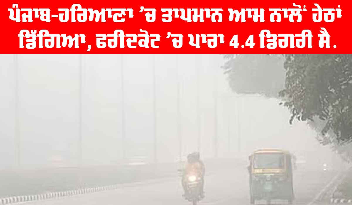 Temperature in Punjab and Haryana: ਪੰਜਾਬ-ਹਰਿਆਣਾ ’ਚ ਤਾਪਮਾਨ ਆਮ ਨਾਲੋਂ ਹੇਠਾਂ ਡਿੱਗਿਆ, ਫਰੀਦਕੋਟ ’ਚ ਪਾਰਾ 4.4 ਡਿਗਰੀ ਸੈ.