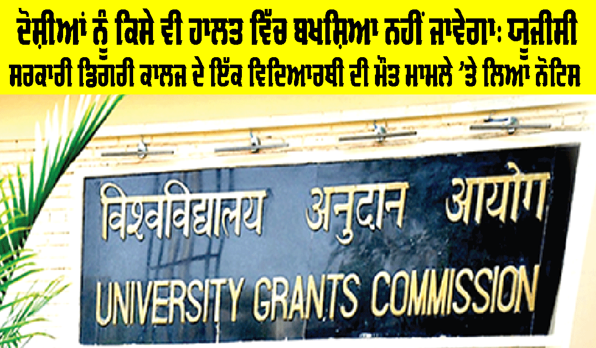 - ਦੋਸ਼ੀਆਂ ਨੂੰ ਕਿਸੇ ਵੀ ਹਾਲਤ ਵਿੱਚ ਬਖਸ਼ਿਆ ਨਹੀਂ ਜਾਵੇਗਾ: ਯੂਜੀਸੀ